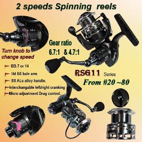 2 speed spinning reels with:7 or 14 sealed